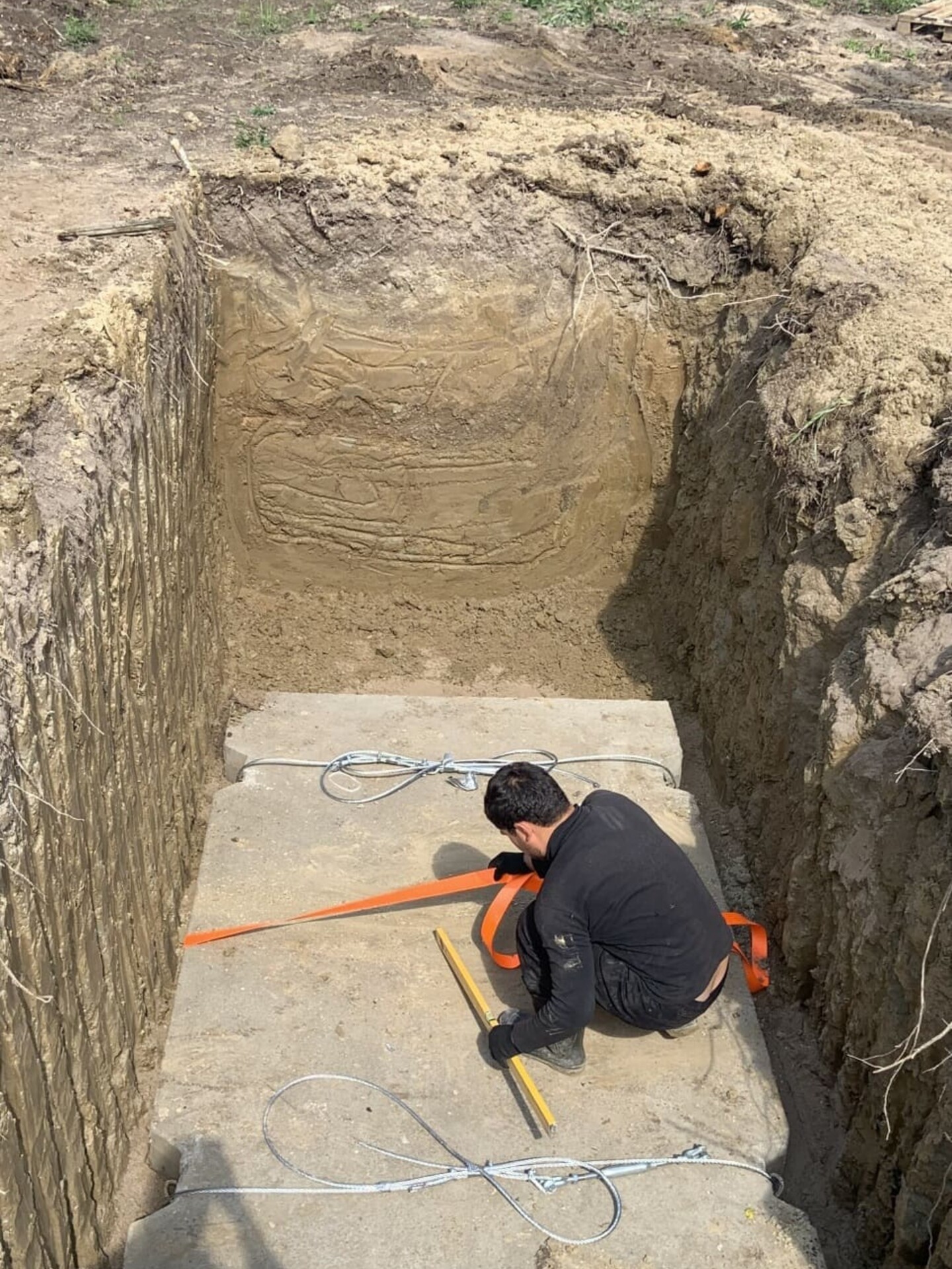 Столкнулись с плывуном, пришлось действовать максимально оперативно. Котлован экскаватором копается в 6-7 раз быстрее, чем руками. Благодаря этому удалось избежать лишних расходов на опалубку.Прозрачный текст для количества, и ещё