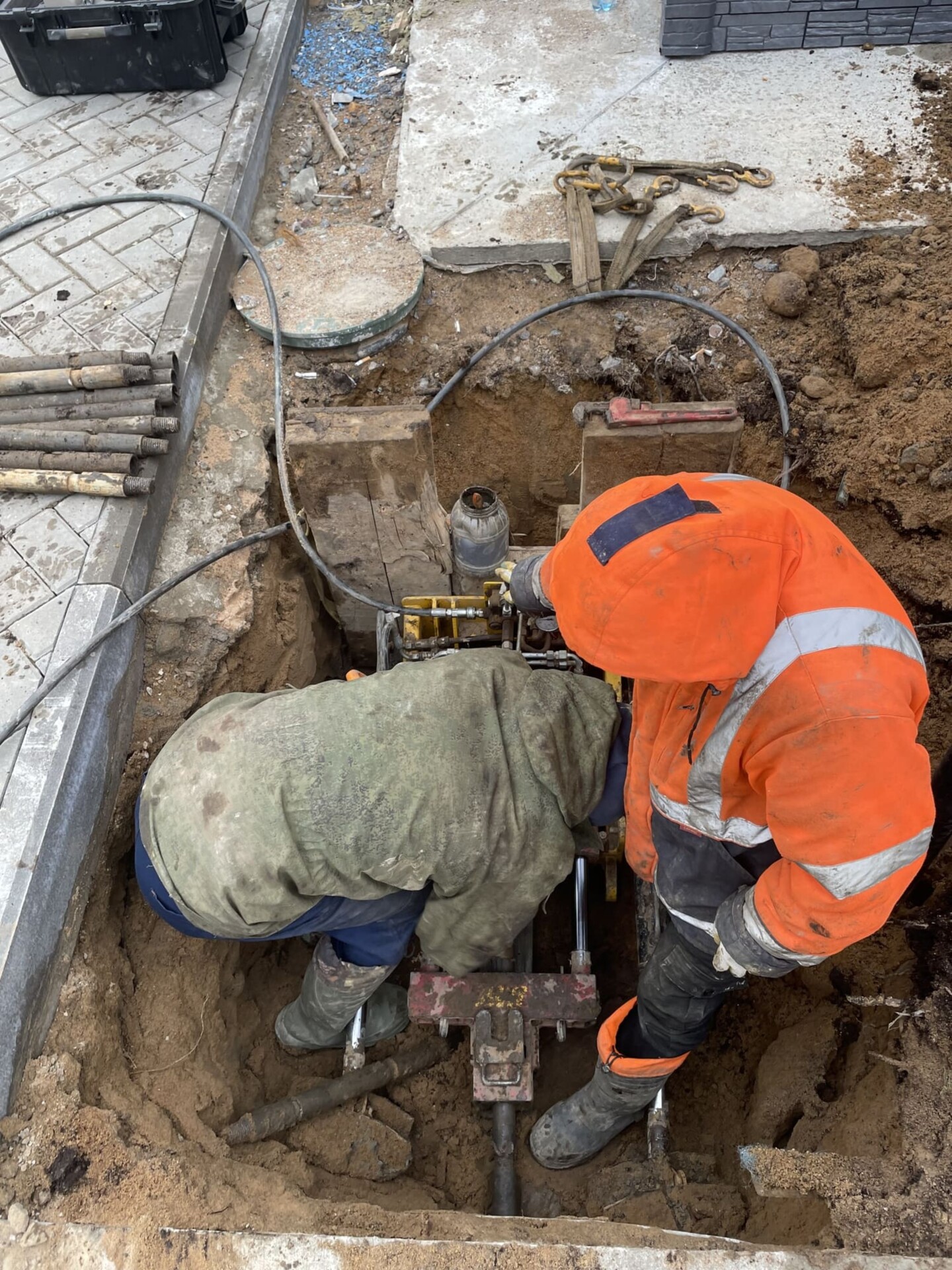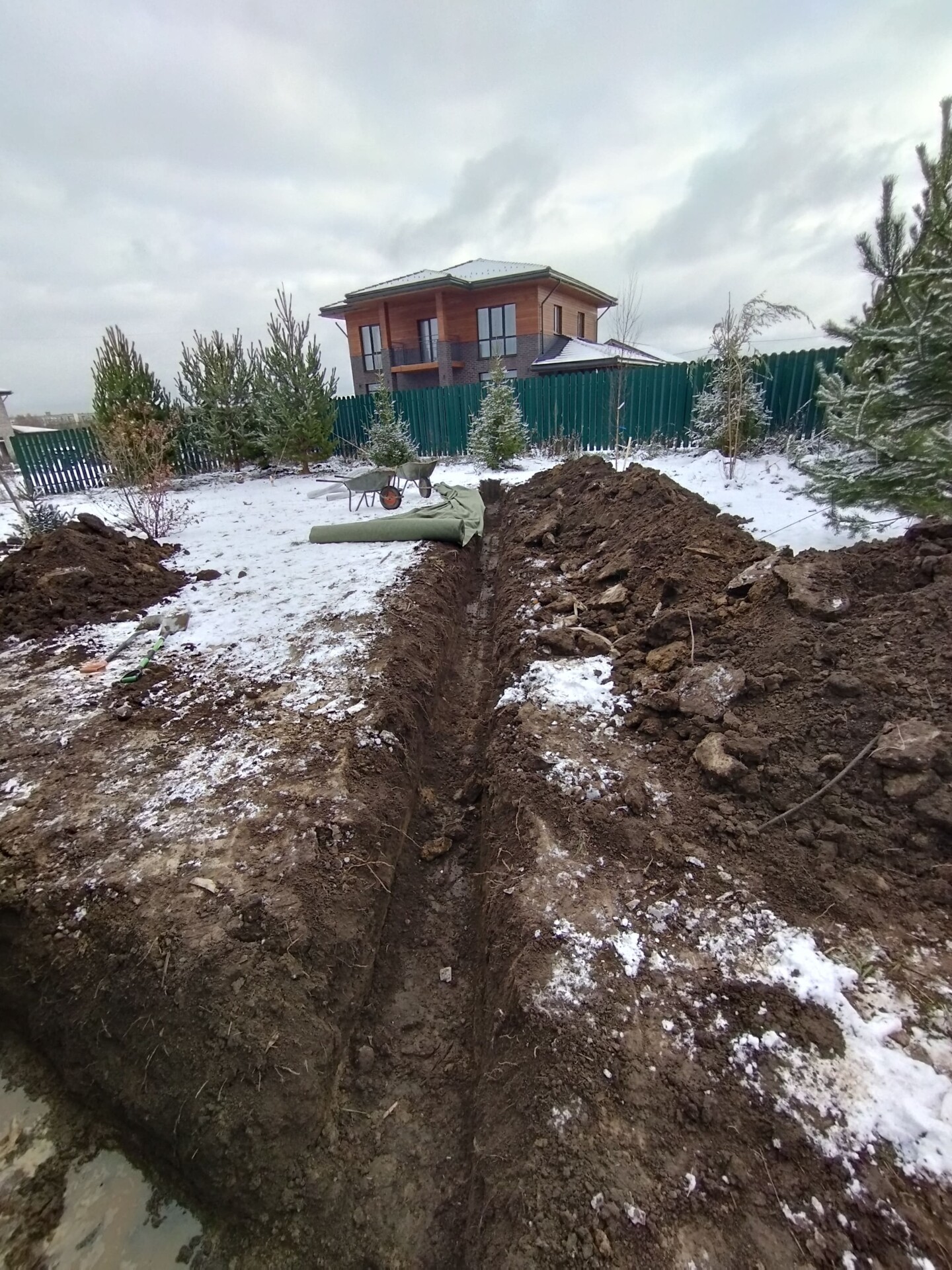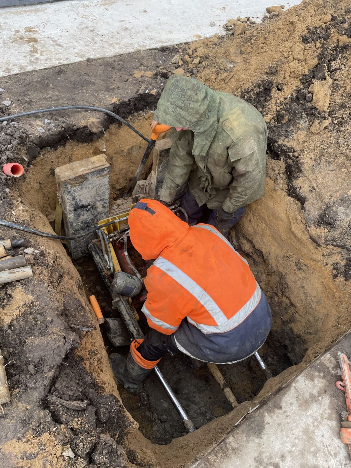 Опытная бригада справилась с задачей за 1 день несмотря на высокий уровень грунтовых вод. Качественная локация "ЭРА" позволила провести трубы на заданной глубине в точно заданные отметки. Прозрачный текст для количества, ещё немного