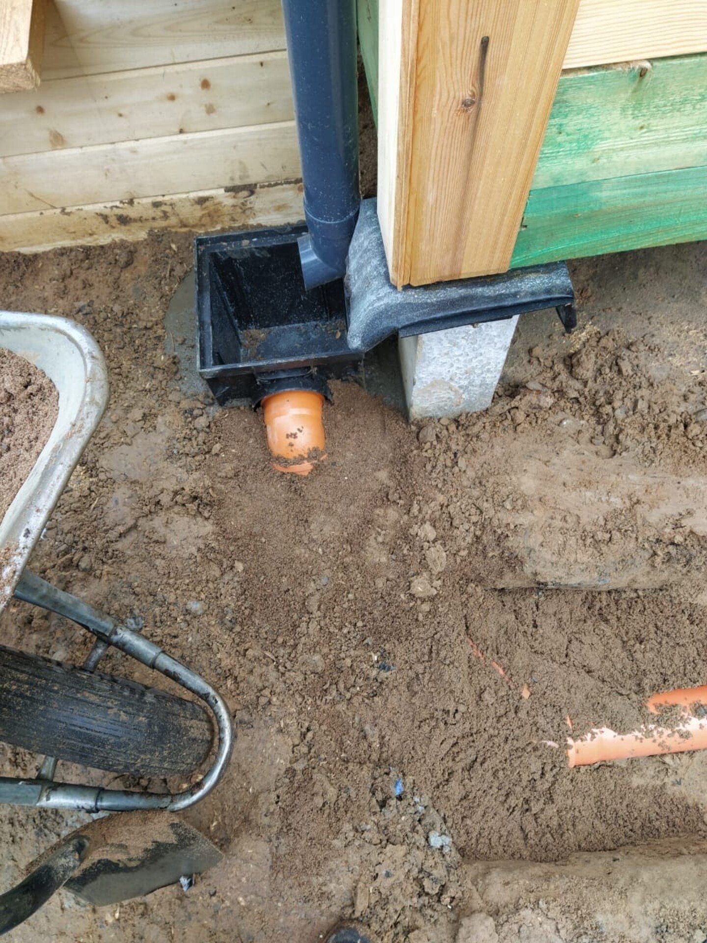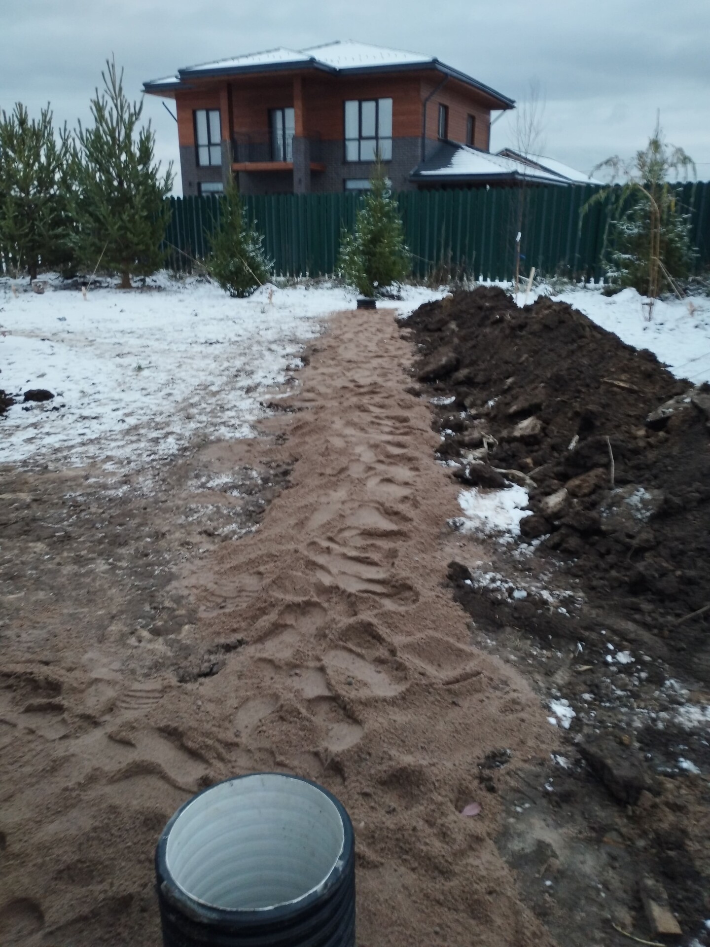 Из-за стесненых условий работы выполнялись "вручную". Песок для монтажа трубопроводов перемещали около 25-30 метров. Смонтировали 55 метр ливневой канализации и 4 дождеприемника за 1 день. Прозрачный текст для количества,чуток пара